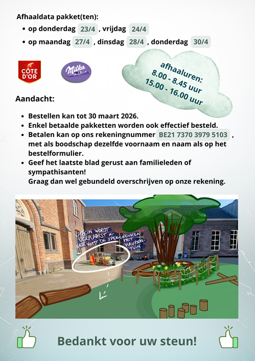 Alvast bedankt voor uw steun! De integrale opbrengst gaat naar de vernieuwing van onze speelplaats(en).